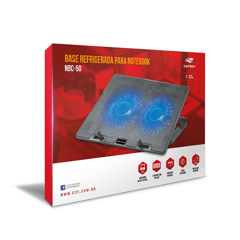 Tenha segurança, comodidade e praticidade enquanto utiliza o seu notebook com a base refrigerada NBC-50 da C3Tech! Oferece diversas possibilidades de inclinação do notebook, proporcionando melhor ângulo de visão para longas horas de uso sem prejudicar suas mãos, pescoço e coluna. Conta com 2 coolers fan, que mantêm o seu notebook na temperatura ideal, evitando superaquecimento e prolongando a vida útil do seu equipamento.