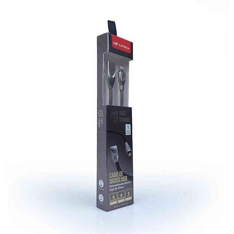 Cabo USB para recarga e sincronização de dados através da conexão USB-Lightning, compatível com IOS. Recarregue mais rápido seus dispositivos eletrônicos com a função Fast Charger. O cabo CB-L180 tem um comprimento de 1 metro, além de garantir estilo e resistência com seu revestimento em Denim.